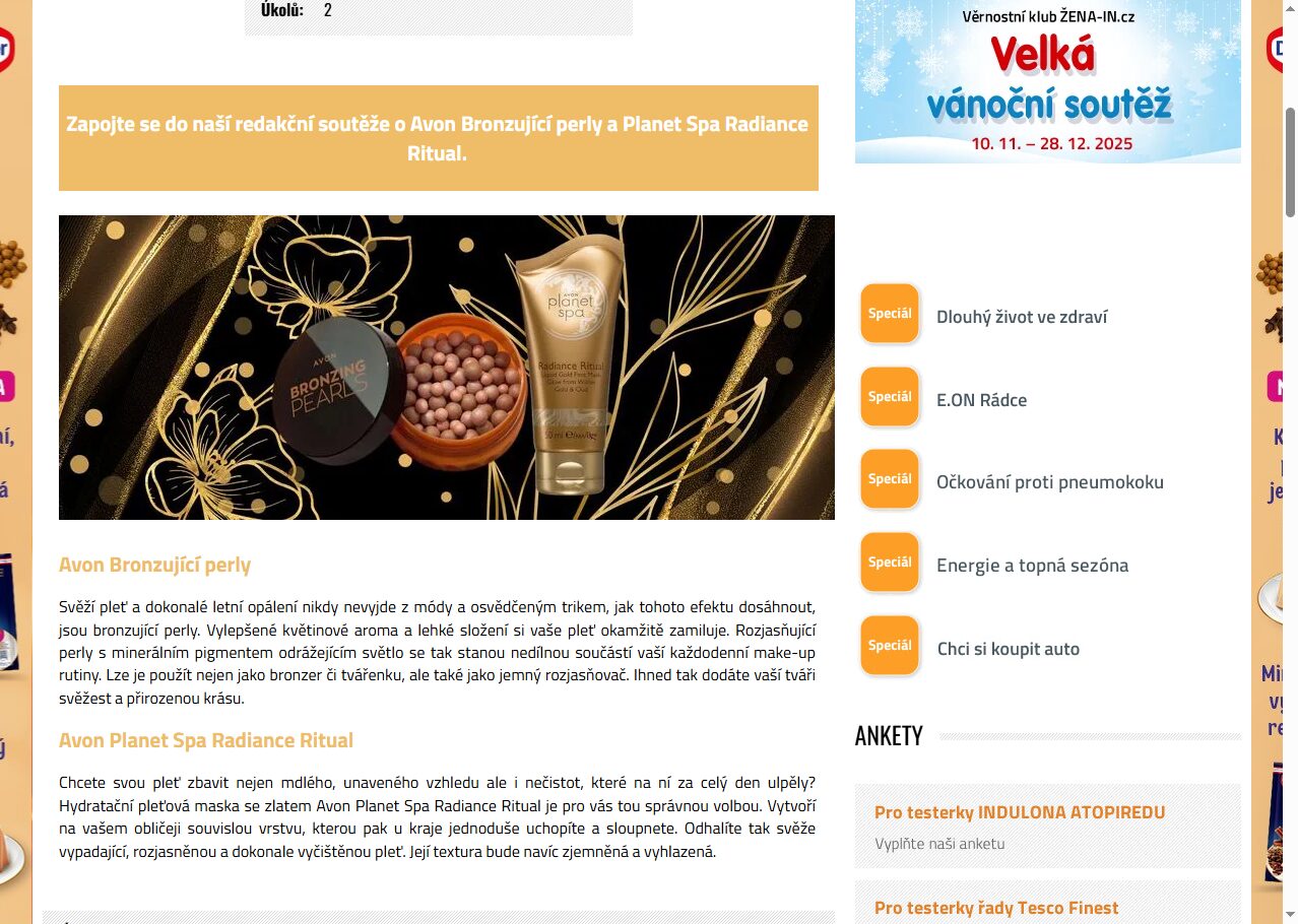 Zapojte se do naší vzrušující online soutěže o bronzující perly a pleťovou masku! To je skvělá příležitost pro všechny milovníky krásy, kteří chtějí vyhrát úžasné ceny a zároveň se pobavit. Aktuální soutěže na zena-in.cz přinášejí šanci ukázat vaši kreativitu a nadšení. Nezmeškejte tuto jedinečnou příležitost a soutěžte s námi! Těšíme se na vaše příspěvky a přejeme hodně štěstí!