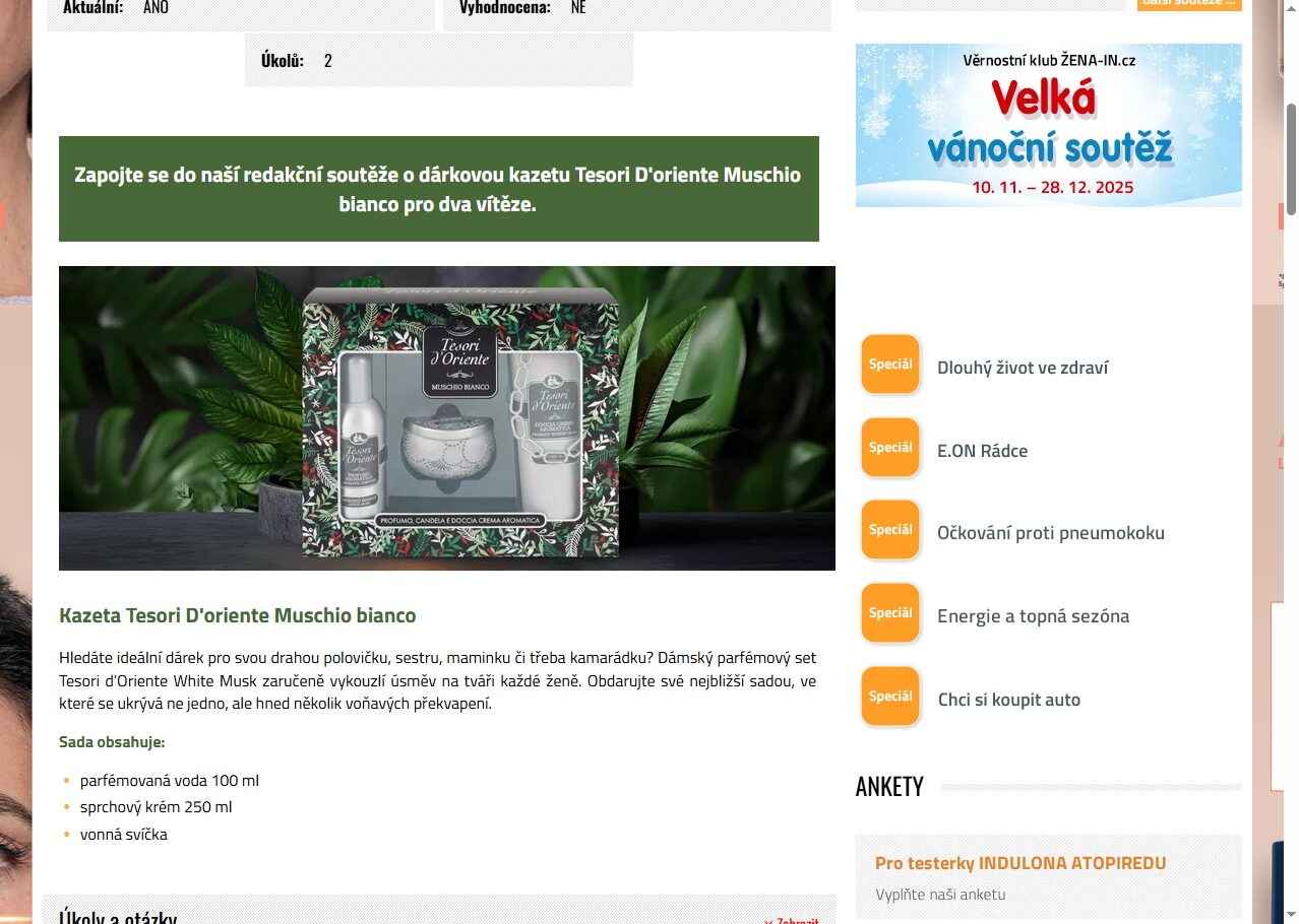 Soutěž probíhá na zena-in.cz do 15.12.2025. Výherce bude vyhlášen na stránkách organizátora.