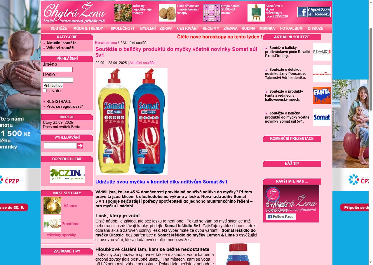 Zapojte se do vzrušující online soutěže a získejte šanci vyhrát balíčky produktů do myčky, včetně novinky Somat sůl 5v1! Soutěžíme o skvělé ceny, které usnadní údržbu vaší kuchyně. Nezmeškejte tuto příležitost a staňte se jedním z výherců v soutěžích na internetu. Připojte se k nám a objevte, jak snadné je vyhrát!